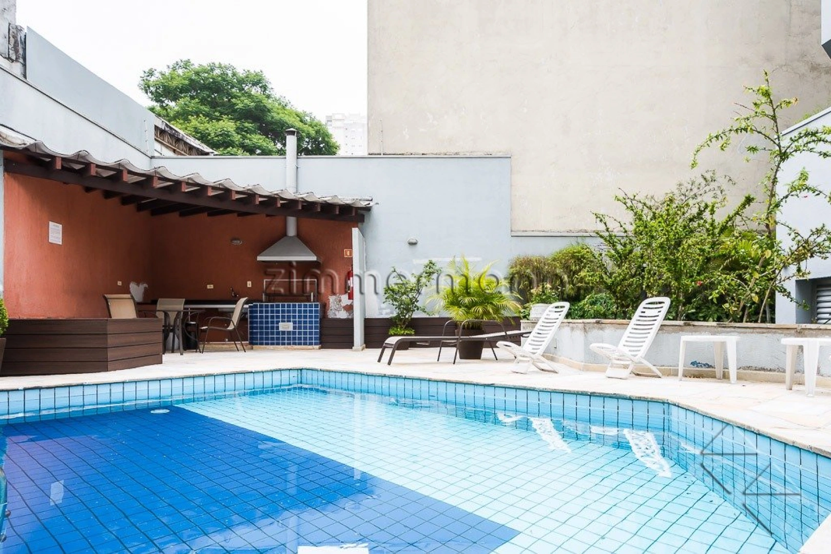 Edifício com lazer completo: sauna, salão de festa, churrasqueira e piscina.